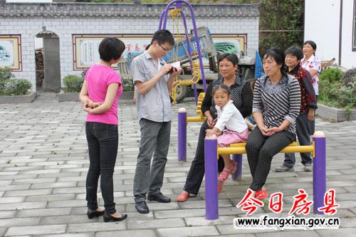 图为十堰日报记者正采访窑淮乡村民