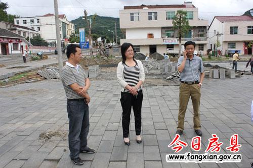 图为县领导徐锦凤、张永平陪同记者在窑淮乡淮水广场采访