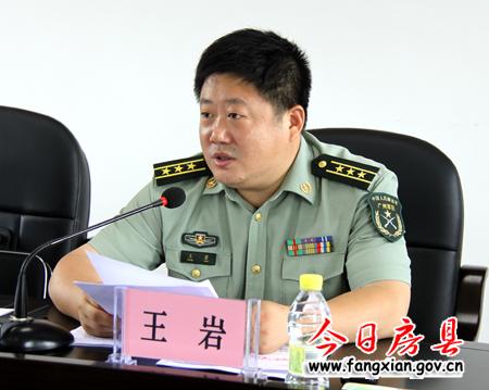 图为县委常委、人武部政委王岩讲话