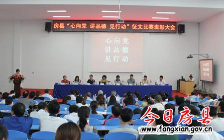 今日房县网讯 见习记者刘臣 报道:1日,全县“心向党、讲品德、见行动”征文比赛表彰大会在东城小学会议室举行。县领导陈渊、胡维英出席会议,县直相关单位负责人及部分离退休老干部参加会议。