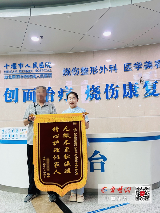 看着恢复如初的皮肤,老人激动地握住李淑萍的手,并送上锦旗。锦旗上“无微不至献温暖 精心护理似家人”的话语,成为医患深情的最佳注释。