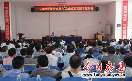 王玉德教授围绕“诗经是什么文化?如何打造 诗经文化?怎样以诗经文化为载体,深刻阐释了诗经文化与全县经济发展的渊源,为全县党政干部上了一堂思想大解放、文化大繁荣、经济大发展的生动教育课。