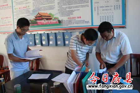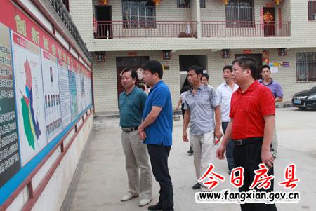 图为检查组察看化龙堰镇古城村社会管理宣传栏