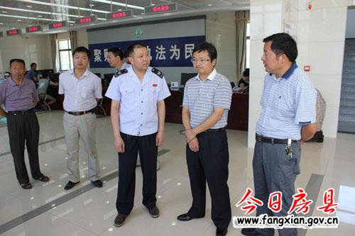 图为王家波一行在地税局检查办税服务大厅行风落实情况