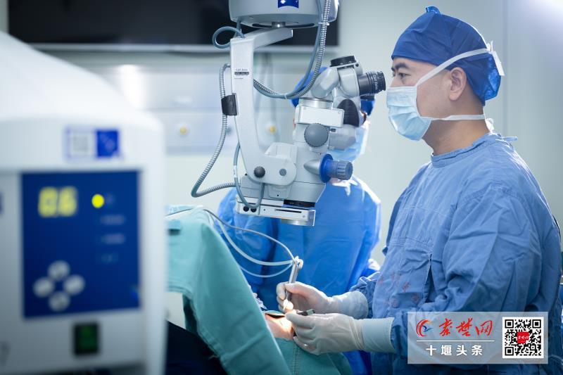 为掌握25G微创玻璃体视网膜手术,他实验室的模型上反复练习,直至每一个精细动作都成为肌肉记忆;为开展全飞秒激光近视手术,他远赴海内外多家顶尖医疗机构交流,成为全飞秒全球认证手术医师,将“2毫米切口、次日复明”的先进技术带回十堰;2024年,他又成为全国首批开展蔡氏散光型三焦点人工晶体植入术的专家,让无数复杂白内障患者告别了“远视镜、近视镜”来回切换的烦恼。