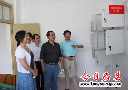 图为省文明办主任蒋南平一行在县”三城联创“办公室调研