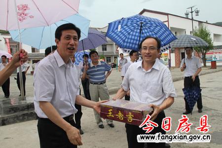 尹汉宁一行冒着倾盆大雨,先后深入到东城小学、诗经广场、军店镇双柏移民安置小区、化龙堰镇古城村移民安置小区、窑淮镇界山村村委会进行了实地调研。了解我县县域经济发展情况,并听取县委书记沈明云,县长朱光洪汇报了今年以来我县县域经济社会发展情况。尹汉宁一行对布局科学、配套完备的东城小学赞不绝口。