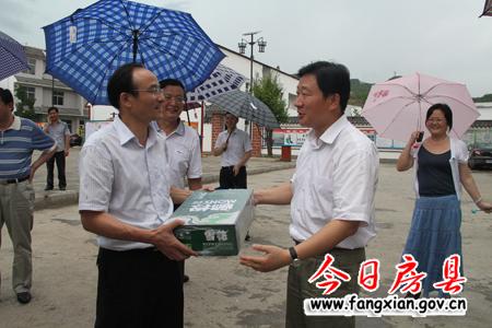 图为尹汉宁代表省委、政府慰问省政协驻化龙堰镇古城村工作人员