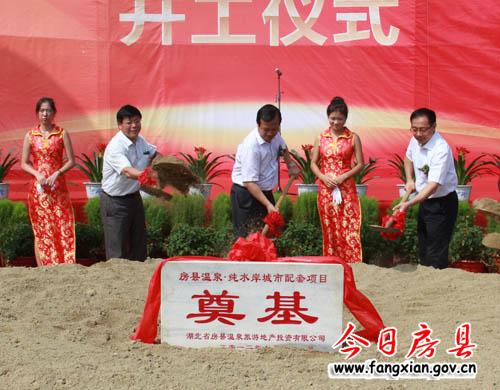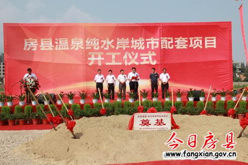 今日房县网讯 记者陈锐 桂涛通讯员唐毅 报道: 2日,房县温泉·纯水岸城市配套项目举行开工仪式。副市长张歌莺,县长朱光洪,县委常委、副县长姚天国,鄂旅投资公司党委书记、董事长马清明、房县温泉旅游投资有限公司党委书记、董事长瞿定远等出席仪式。姚天国主持仪式,马清明宣布开工。