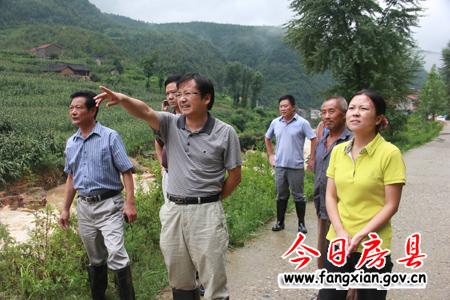今日房县网讯 记者桂涛通讯员王瑞报道: 4日至5日,万峪河乡再次遭受暴雨袭击,全乡受灾严重。6日上午,县委常委、纪委书记王家波,县人大副主任丁宪章带领县农办、烟叶办、水务局、交通局、民政局等部门相关负责人深入万峪河乡察看灾情,指导抗灾救灾工作。