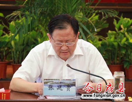 图为县政协副主席张延贵传达全县三级干部会议精神