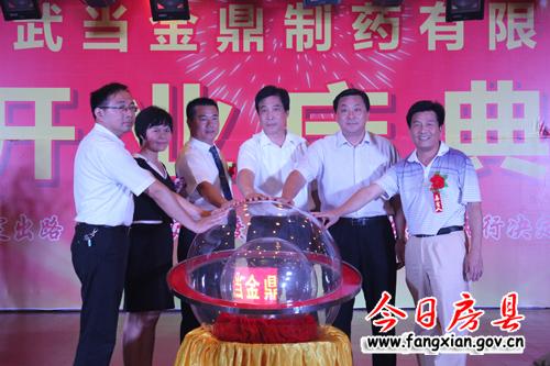 今日房县网讯 见习记者刘臣 报道:9日,湖北武当金鼎制药有限公司举行了盛大的开业庆典。市政协副主席卢富昌、市药监局局长柴青林、襄阳市药监局局长刘全新、湖北隆中药业集团董事长黄正军,县领导沈明云、朱光洪、王启云、杜启学、林华等出席仪式。