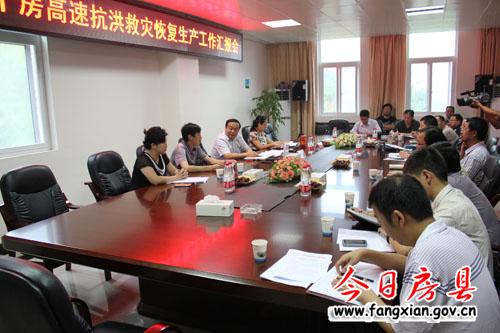 今日房县网讯 记者陈锐报道: 13日,副市长沈学强一行赴我县查看“十房”高速、“六两”路沿线水毁道路抗灾自救工作,并在十房高速指挥部召开座谈会。县委常委、常务副县长刘庆涛,副县长林华出席会议。