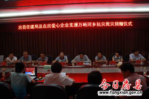 活动中,县住建局捐款10万元,武汉奔业房地产开发有限公司、武汉新六建设集团、十堰风雅置业有限公司、十堰众力置业有限公司、十堰金坤建筑有限责任公司、房县居安福商砼有限责任公司6家公司各捐款5万元。