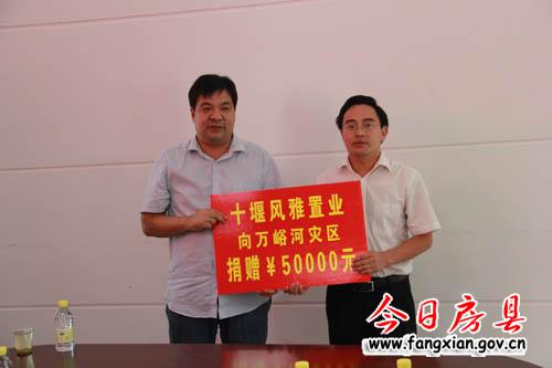 图为十堰风雅置业向万峪河乡捐款5万元