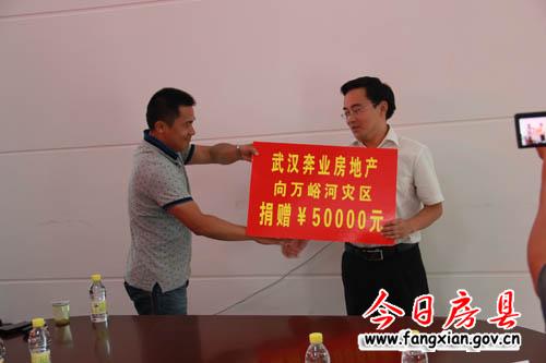 图为武汉奔业房地产向万峪河乡捐款5万元