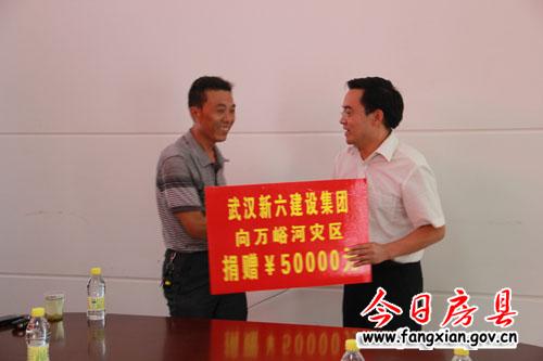 图为武汉新六建集团向万峪河乡捐款5万元