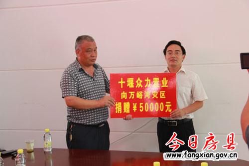 图为十堰众力置业向万峪河乡捐款5万元