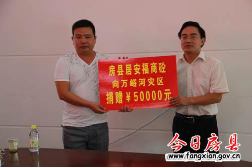图为房县居安福商砼向万峪河乡捐款5万元