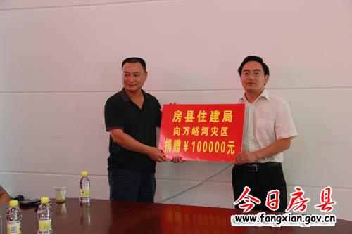 图为县住建局向万峪河乡捐款10万元