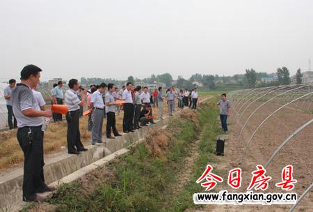与会人员首先参观了城关镇油菜育苗现场、军店中药材示范园、白鹤镇大棚蔬菜基地等秋播现场,学习和分享农业抗灾和秋播工作经验。