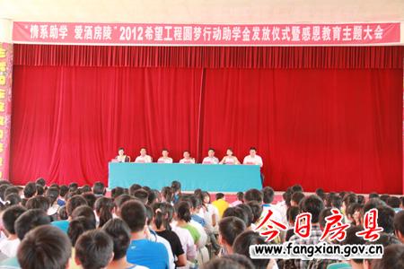 今日房县网讯 实习生向强 通讯员高英 报道:4日,我县希望工程圆梦行动助学金发放仪式在县一中举行。县人大副主任丁宪章、副县长姚峰、政协副主席王学能出席会议。