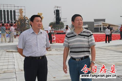 图为沈明云、王启云察看诗经文化旅游节开幕式现场布置情况