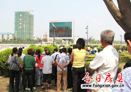 图为市民在西河广场大屏幕收看直播
