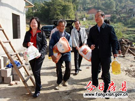 徐锦凤一行向倒房户刘志炳捐赠救灾物资