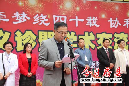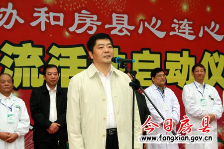 启动仪式由县长朱光洪主持,县委书记沈明云致欢迎辞,沈明云在致辞中说,魂牵梦绕四十载,协和房县心连心,感谢武汉协和医院一直以来对房县医疗卫生事业的关心;此次协和医院专家团到此为广大患者把脉问诊,为医务人员传经送宝,对于提高房县医疗卫生的服务水平,满足房县人民群众的健康需求来说意义重大;沈明云代表房县医疗卫生事业向此次到来的专家学者表达崇高的敬意,坚信房县的医疗卫生事业今后的发展会蒸蒸日上,祝愿此次大型义诊暨学术交流活动取得圆满成功。