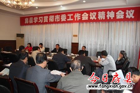 今日房县网讯 记者陈锐 10月23日,我县在县委常委会议室召开会议,学习贯彻市委工作会议精神。县领导沈明云、朱光洪、张慧彬、陆毅、王家波、刘庆涛、陈渊等在家的县四大家领导出席会议。