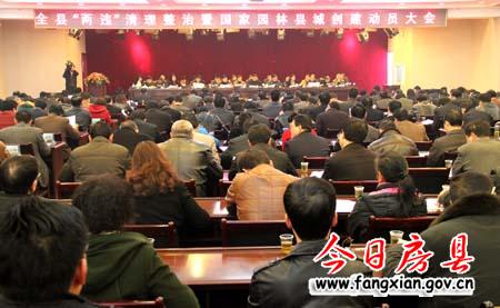 今日房县网讯 记者田兰兰 报道: 27日,我县召开“两违”清理整治暨国家园林县城创建动员大会,号召全县上下统一思想,迅速行动,打一场违法占地、违规建房攻坚战,掀起创建国家园林县城高潮,为全县经济社会发展创造良好的环境。县委书记沈明云主持会议并作重要讲话,县长朱光洪作动员讲话,王启云、陆毅、刘庆涛、吴永强、徐锦凤、陈渊、王岩等县领导出席会议。