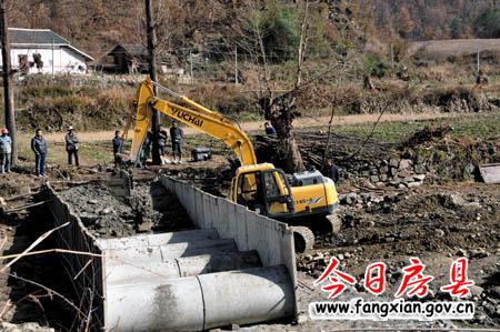 进入初冬,我县积极抢抓中央彩票公益金支持革命老区实施整村推进工作的机遇,组织项目区群众发扬老区精神,全力投入到项目建设中去。11月底,在中央批复刚刚正式下达后,全县规划的127个项目已启动51个。图为11月29日土城镇龙坪村群众投工投劳建设漫水桥的场景。(张仁华 摄)