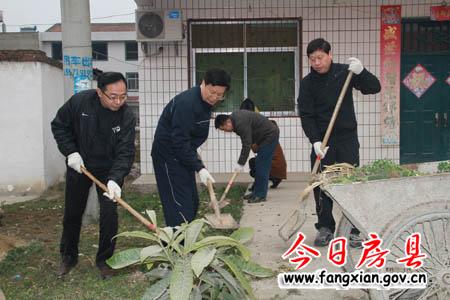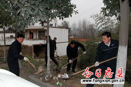 在房期间,省发改委党组、十堰市和房县党政主要负责人的带领下,省发改部门的80多名机关干部,在军店镇月明村参加了一上午的户院打扫、渠道清淤劳动。劳动结束后,领导们还深入到东城工业园、久澳化工、金鼎制药、雅德农用车有限公司、东城小学、县城至军店一级路、双柏移民小区等地进行了参观考察。
