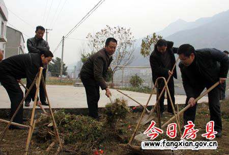 图为县委常委、政法委书记杜启学带领政法干部清除群众庭院杂草