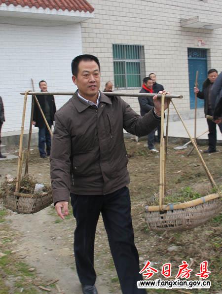 图为县委常委、政法委书记杜启学挑走杂草