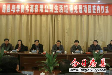 今日房县网讯 记者戢太敏 通讯员付传斌 报道:18日,房县人民政府与华新水泥股份有限公司正式签约1.2亿元生活垃圾处理项目。华新水泥股份有限公司副总裁、纪委书记、工会主席周家明,县委书记沈明云,华新水泥股份有限公司助理副总裁、华新环境工程有限公司总经理王焕忠,县人大常委会主任王启云,县政协主席陆毅,县委常委、常务副县长刘庆涛,华新水泥房县有限公司总经理何建华,副县长林华出席签约仪式。县委常委,常务副县长刘庆涛与华新水泥股份有限公司助理副总裁、华新环境工程有限公司总经理王焕忠在投资协议上签字。