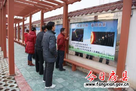 近日,县东城小学在该校综合楼西边建起我县最长的文化长廊。新建的文化长廊由“放眼世界,面向未来”、“胸怀祖国,中华腾飞、“风雅房县,诗祖故里”、“东城校园,璀璨明珠”四部分组成,共有45块展板,展板包含名人名言、优美风光、名人头像、科技发展、地域特色、教师风采、廉政文化等方面内容,全方位、多角度的展示了世界、中国、房县和东城小学的发展变化与光辉历史, 提升了校园文化品位。(赵爱平 李英 摄)