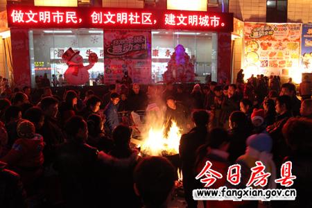 市民在寿康生活广场前的篝火晚会狂欢