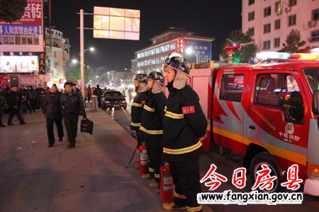 县消防大队组织巡防小队在街头执勤
