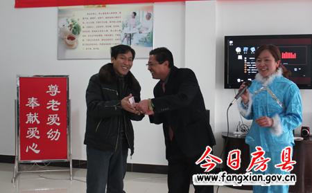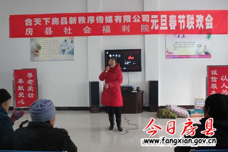 今日房县网讯 记者 杨鹏 报道:4日,县福利院与企业联合开展庆元旦春节联欢会,在寒冷的冬季为福利院孤寡老人带来节日的温暖和欢乐。联欢会上,企业员工为老人们带来丰富多彩的歌曲、舞蹈等节目,老人们个个脸上都洋溢着欢快的笑容,一位60多岁老人演唱的《好人一生平安》将整个会场的气氛推向高潮。在热烈的气氛中,企业负责人向福利院捐赠各种时令水果及2000元现金,并祝愿老人们健康长寿、平安幸福。