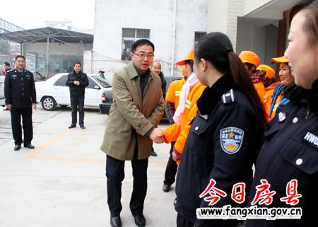 今日房县网讯 记者 吴宏强 通讯员 陈业波 报道: 在新春佳节即将到来之际,16日上午,县长朱光洪亲切看望慰问了驻房武警官兵、公安干警、一线职工和部分复员军人,代表县委、县政府向他们致以节日的问候和良好的祝愿。县政协主席陆毅,县委常委、常务副县长刘庆涛,县委常委、人武部政委王岩,县人大副主任陈德汉,县政府党组成员、公安局局长柯正洪陪同慰问。