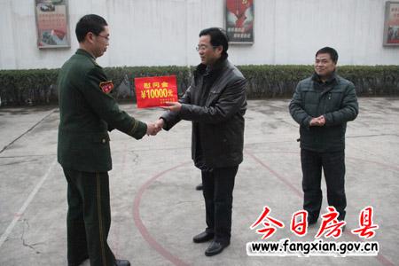 县委副书记张慧彬向驻房武警官兵送上慰问金