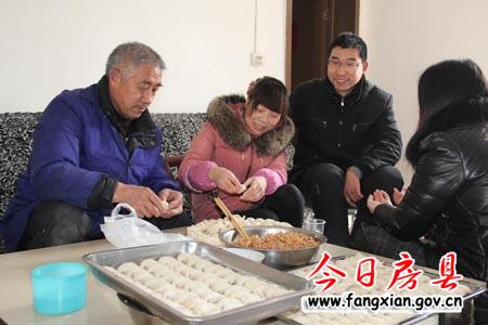 图为城关镇三海村水云涧农家乐老板陈某一家人正忙着包饺子