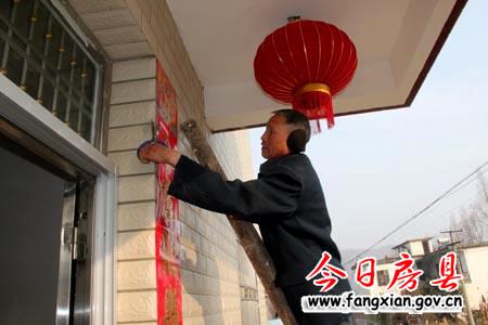 图为城关镇三海村陈某家早早贴上了春联、门神