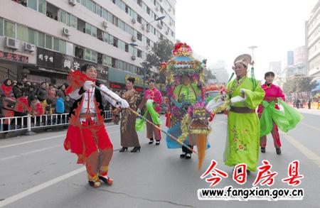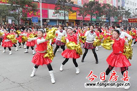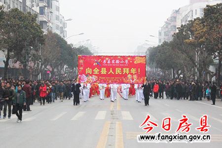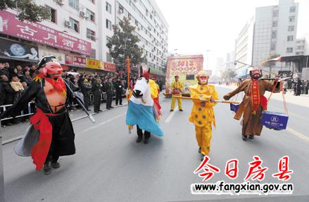 随着县委副书记张慧彬宣布:“诗祖故里·文明房县”2013年春节民间文艺大巡游活动正式开始!两条“金龙”上下翻飞,左右腾越行走在队伍最前面,31台彩车、45支表演团队紧随其后,优美的音乐伴奏、欢快的舞蹈表演表达了了人们对建设“实力房县、生态房县、和谐房县、文明房县、幸福房县”的美好期盼,有着深厚文化底蕴的房陵古城顿时沉浸在一片喜庆祥和的节日氛围中。