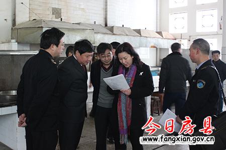 副县长林华一行在县一中检查食堂卫生达标情况