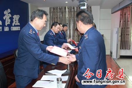 图为局领导们为受表彰单位和个人颁发荣誉证书
