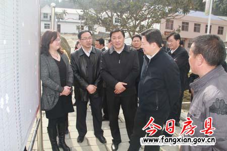 在察看军店镇苗圃基地建设和野人谷镇生态旅游产业发展时,周霁要求,房县要充分发挥生态优势,更加注重在保护中发展、在发展中保护,积极构建结构合理、特色鲜明、节能环保、竞争力强的现代产业体系,带动群众脱贫致富,加快全面建设小康社会步伐。
