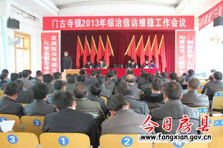 今日房县网讯 记者 杨鹏 报道:5日,门古寺镇召开2013年综治信访维稳工作会,镇长王元涛在会上强调,做好“三方调节”工作,持之以恒抓好平安建设。会上,王元涛总结了去年门古寺镇综治信访维稳工作成果,安排部署今年工作要点。他要求,抓作风,加强队伍建设,增强责任意识,坚决遏制推诿行为。抓基层,最大限度化解好矛盾,解决好信访,将矛盾化解在源头;抓落实,将信访人员、事件登记造册,明确办理时间,加大工作力度,做到手上一本帐、心里一本帐。抓典型,进一步加大中小学安全隐患排查力度,严厉打击不赡养老人,长期无理上访人员,针对性地解决信访遗留问题。